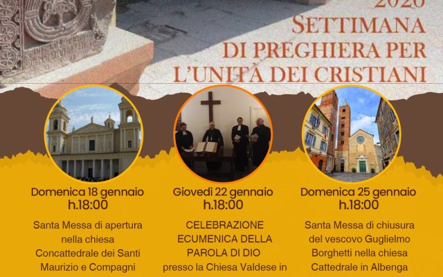 Giornata per la Vita – 1° febbraio 2026 sul tema “Prima i bambini!”. La Giornata per la Vita, celebrata il 1° febbraio, è un’importante ricorrenza dedicata alla riflessione, alla promozione e alla tutela… Albenga – Presentazione del restauro del Polittico con Vergine Assunta e Santi, opera di Giulio De Rossi. Sabato 31 gennaio alle ore 15.30, presso l’Auditorium del Polo Scolastico Redemptoris Mater di Albenga… La settimana di preghiera per l’unità dei cristiani 2026 Anche quest’anno si è svolta con proficua soddisfazione la settimana di preghiera per l’unità dei… Il Vescovo Borghetti ha incontrato i giornalisti in occasione della festa di San Francesco di Sales Per celebrare il patrono dei giornalisti, San Francesco di Sales, il Vescovo della Diocesi di… Messaggio della Presidenza CEI per la scelta dell’IRC – 2026/2027 Cari studenti, care studentesse, cari genitori, al momento dell’iscrizione alle prime classi dei diversi ordini… Oftal – Pellegrinaggio a Lourdes per l’11 febbraio In concomitanza con il 168° anniversario della prima apparizione della Vergine Immacolata a Lourdes, la… Pellegrinaggi a Fatima e Santiago de Compostela – Mete di fede L’ufficio diocesano pellegrinaggi organizza per la primavera del 2026 un pellegrinaggio a Fatima e Santiago… Pellegrinaggio Fatima e Santiago 2026 Archivio Notizie Dagli Uffici Cancelleria, News Calendario 2025 – 2026 – Esercizi Spirituali per Sacerdoti e Diaconi permanenti a Casa F.A.C.I. Cancelleria, Documenti, News, Progetto Pastorale, Vicario Episcopale per il Coordinamento dell'attività Pastorale Percorso di Chiesa per l’Anno Pastorale 2025 – 2026. – Nelle mani del vasaio (Ger 18,1-6) – Educare e formare alla vita cristiana: la Chiesa come famiglia educante Assemblea diocesana, News Assemblea del Clero 18 e 19 settembre presso il Seminario di Albenga Cancelleria, News Pubblicazione dell’elenco di operatori economici Archivio Documenti S.E. Rev.ma Mons. Guglielmo BorghettiBiografia Stemma Episcopale Contatti Agenda Vescovo Domenica 25 gennaio 10:00 – San Bartolomeo la Mare – chiesa Divina misericordia – Santa Messa e Cresime. 18:00 – Albenga – Cattedrale – Santa Messa per la chiusura della settimana di preghiera per l’Unità dei Cristiani. Lunedì 26 gennaio 09:30 – 12:30 – Albenga – Udienze in Episcopio. Martedì 27 gennaio 09:30 – 12:30 – Albenga – Udienze in Episcopio. 15:00 – Borghetto S. S. – chiesa parrocchiale Sant’Antonio – presiede la Santa Messa esequiale per la mamma di don Antoine Dadour. Mercoledì 28 gennaio 09:30 – 12:30 – Albenga – Udienze in Episcopio. Venerdì 30 gennaio 09:00 – 10:30 – Albenga – Udienze in Episcopio. 11:00 – Alassio – chiesa S. Maria degli Angeli (Salesiani) – Santa Messa in onore di don Bosco. Sabato 31 gennaio 18:00 – Pontedassio – chiesa parrocchiale – Santa Messa a seguire presentazione del percorso pastorale 2025/26. Domenica 1° febbraio 11:00 – Ceriale – chiesa parrocchiale – Santa Messa per la giornata della Vita. 18:00 – Pietra Ligure – chiesa parrocchiale N. S. del Soccorso – Santa Messa e Cresime. Il Vescovo riceve su appuntamento Il tuo browser non supporta i frame