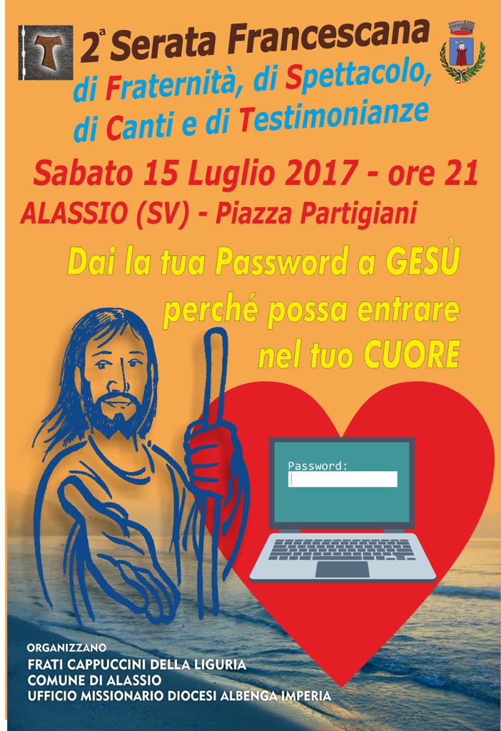 Dopo il ritiro spirituale in barca, organizzato la scorsa settimana sul golfo che va da Alassio a Diano Marina, ieri, è iniziato, ad Alassio, in piazza Partigiani, per iniziativa dei frati cappuccini della Liguria, in collaborazione con l’Ufficio Missionario della diocesi di Albenga–Imperia e il comune della città alassina , una serata di fraternità all’insegna della linea cristiana. Interessante e originale, accolto con simpatia in quanto cavalca i segni e gli strumenti dei tempi, è il tema della iniziativa: «Dai la tua Password a Gesù perché possa entrare nel tuo cuore». Questa seconda serata di fraternità, di spettacolo, di canti e di testimonianza è stata infatti affiancata dal sostegno di numerosi volontari di estrazione laica e religiosa e di numeroso pubblico, che non ha lesinato applausi agli improvvisati attori. E’ stato infatti presentato uno spettacolo multiforme di canti, danze, esibizioni corali e testimonianze attraverso appassionate e stimolanti interviste. Tra i protagonisti dello spettacolo, Fabiana e Gens del gruppo missionario dei giovani della diocesi di Albenga–Imperia, che si sono prodotti in un significativo musical: «Apri gli occhi a Cristo», teso a imparare ad amare Dio. L’iniziativa ha avuto origine dalla “Evangelii gaudium”, quando invita a riscoprire la sorgente della evangelizzazione nel mondo contemporaneo. Papa Francesco esorta infatti tutte le Chiese all’impegno comune di mettersi in stato di missione per andare incontro ai fratelli.