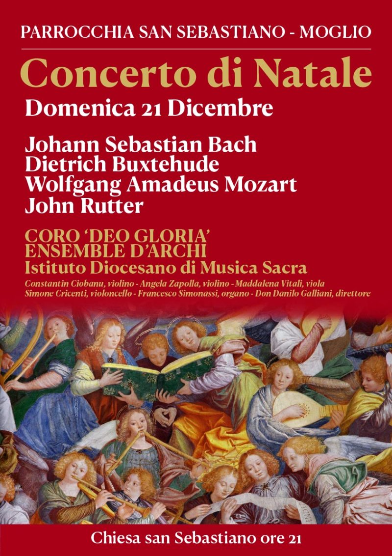 Domenica 21 dicembre alle 21, la chiesa di san Sebastiano a Moglio (Alassio) ospiterà il “Concerto di Natale” che vedrà esibirsi il coro “Deo Gloria” e l’ensemble d’archi dell’Istituto Diocesano di Musica Sacra diretti da Don Danilo Galliani.