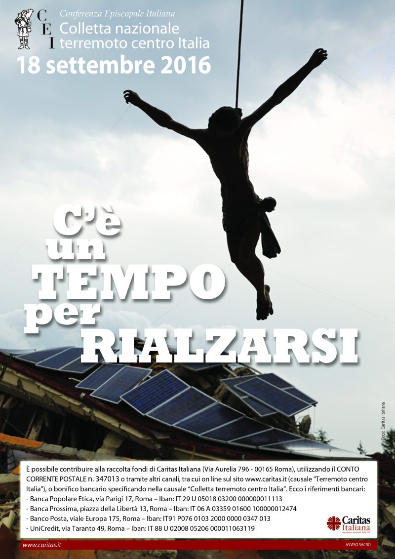 – on line dal sito di Caritas Italiana (causale “Terremoto centro Italia”);