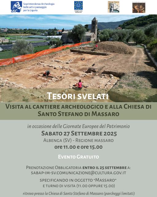 L’evento è gratuito, è obbligatoria la prenotazione entro il 25 settembre a sabap-im-sv.comunicazione@cultura.gov.it scrivendo in oggetto “Massaro”, turno di visita (11.00 oppure 15.00) e numero persone.