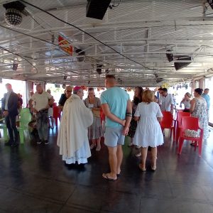 Non è mancato un momento di confronto con i gestori delle attrazioni e i lavoratori del luna park, spesso impegnati in condizioni difficili e lontani dalle proprie famiglie per lunghi periodi. Il Vescovo Guglielmo ha ascoltato le loro storie, condiviso parole di conforto e ha sottolineato l’importanza del loro ruolo sociale: “portate allegria e speranza ovunque andiate, siete voi a donare spensieratezza anche nei giorni un po’ più cupi.” In occasione della memoria liturgica dei santi Marta, Maria e Giovanni, esempi di servizio, ascolto e relazione, l’incontro ha assunto un valore spirituale ancora più profondo.