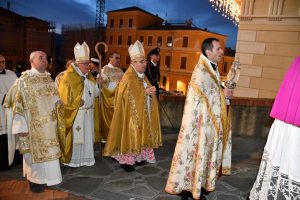 Grande partecipazione di fedeli per la solenne festa di San Leonardo da Porto Maurizio, patrono della città di Imperia. La Messa Pontificale è stata presieduta dall’Arcivescovo di Genova S. E. Mons. Marco Tasca e concelebrata dal Vescovo diocesano S. E. Mons. Guglielmo Borghetti.