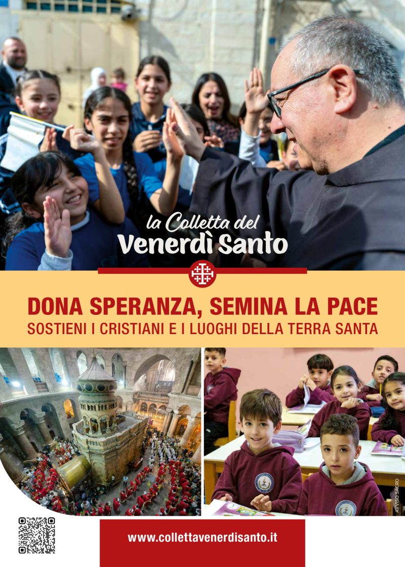 La “Colletta per la Terra Santa”, conosciuta anche come “Collecta pro Locis Sanctis”, nasce dalla volontà dei papi di mantenere forte il legame tra tutti i Cristiani del mondo e i Luoghi Santi. La Colletta, che tradizionalmente viene raccolta nella giornata del Venerdì Santo, è la fonte principale per il sostentamento della vita che si svolge intorno ai Luoghi Santi. Le offerte raccolte dalle parrocchie e dai Vescovi vengono trasmesse dai Commissari di Terra Santa alla Custodia di Terra Santa che verranno usate per il mantenimento dei Luoghi e per i cristiani di Terra Santa, le pietre vive di Terra Santa. La Custodia attraverso la Colletta può sostenere e portare avanti l’importante missione a cui è chiamata: custodire i Luoghi Santi, le pietre della Memoria, e sostenere la presenza Cristiana, le pietre vive di Terra Santa, attraverso tante attività di solidarietà.