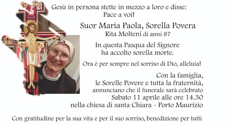 Morta suor Maria Paola delle Clarisse di Imperia