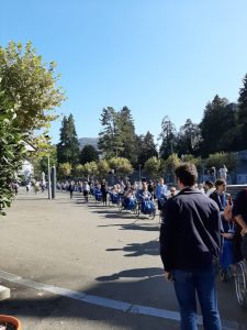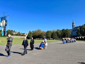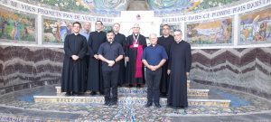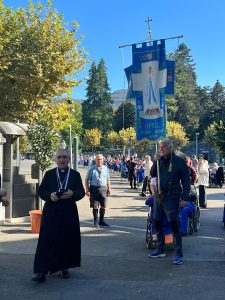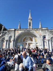 - La grotta di Lourdes rinvia idealmente ad una altra ‘grotta’, Nazareth! Li Maria la Tutta bella –tota pulchra– (cfr Ct 4,1), l’Immacolata, la Panaghia, la ‘riempita di grazia’ ha ricevuto l’annuncio dell’Arcangelo Gabriele: sarà madre del “Figlio dell’Altissimo” (Lc 1, 32). Nel suo grembo -un’altra ‘grotta’ -avviene un concepimento, sboccia una nuova vita, Lei diventa la Madre di Dio, la Madre di Gesù Cristo! Si lascia trasformare dalla potenza dello Spirito accogliendo la Parola. Questa mattina di ottobre alla grotta di Lourdes apriamo la nostra vita alla potenza dello Spirito e come Maria lasciamoci trasformare dalla Parola di Dio, lasciamoci rinnovare nel profondo: nasca Cristo in noi: “mi sia fatto secondo la tua parola” (Lc ,38). Contempliamo e imitiamo Maria e diamo alla luce Gesù anche noi, nuove madri del Verbo per il tempo attuale: “la madre lo portò nel grembo, noi portiamolo nel cuore; la Vergine divenne gravida per l’incarnazione di Cristo, divenga gravido il nostro cuore per la fede in Cristo, ella partorì il Salvatore, partorisca la nostra anima la salvezza e la lode. Non siano sterili le nostre anime, ma siano feconde per Dio” ( Agostino, Discorso 189,3 (PL 38, 10006).
