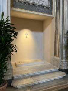 Dopo la catechesi, il nostro cammino ci ha condotto nella maestosa basilica di Santa Maria Maggiore. Lì, davanti alla bellezza degli affreschi e al silenzio che abbraccia i pellegrini, abbiamo sostato in preghiera. Contemplando la figura di Maria, abbiamo affidato le nostre speranze e i nostri progetti, chiedendo il dono di una fede sempre luminosa. Abbiamo visitato la tomba di Papa Francesco.