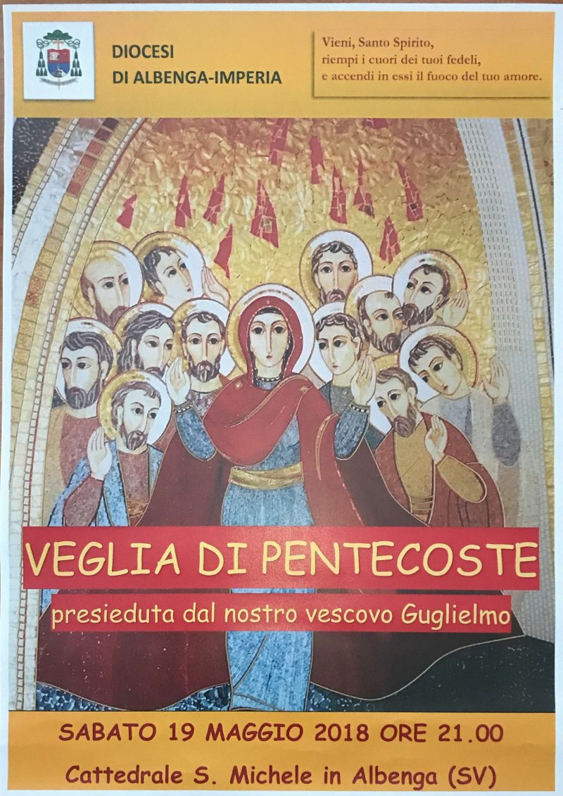 Con una lettera inviata ai sacerdoti, religiosi/e, e fedeli tutti, il Vicario episcopale per la pastorale, don Pierfrancesco Corsi, comunica che sabato 19 maggio alle ore 21:00 ci sarà nella Cattedrale di san Michele ad Albenga la «Veglia di Pentecoste». Sarà solennemente organizzata dalla Consulta diocesana per le Aggregazioni laicali (Cdal). «È una celebrazione della Chiesa locale – scrive il vicario episcopale – e come tale di carattere diocesano e sarà presieduta dal Vescovo, Mons. Guglielmo Borghetti.Ad essa – continua don Corsi – sono invitati l’Azione cattolica, i movimenti ecclesiali e tutte le associazioni, i gruppi-famiglia delle varie parrocchie, i fedeli tutti. Ma soprattutto invito i giovani».